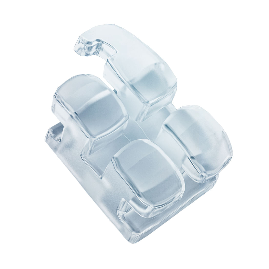 A cerâmica utilizada é translúcida, o que garante uma aparência discreta e natural, combinando com a cor dos dentes. Perfeito para pacientes que buscam uma solução ortodôntica menos visível, mantendo a eficácia e o conforto durante o tratamento.