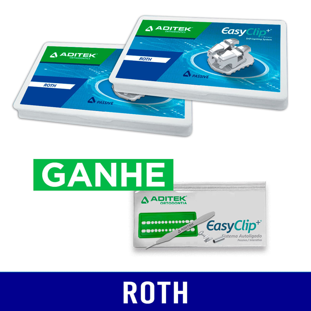 O Kit Bráquete Metálico Autoligado EasyClip+ Interativo Roth 0,022" da Aditek é uma solução moderna para tratamentos ortodônticos, combinando tecnologia avançada e conforto. Com o sistema Roth 0,022", oferece um ajuste preciso e controle eficaz das movimentações dentárias.