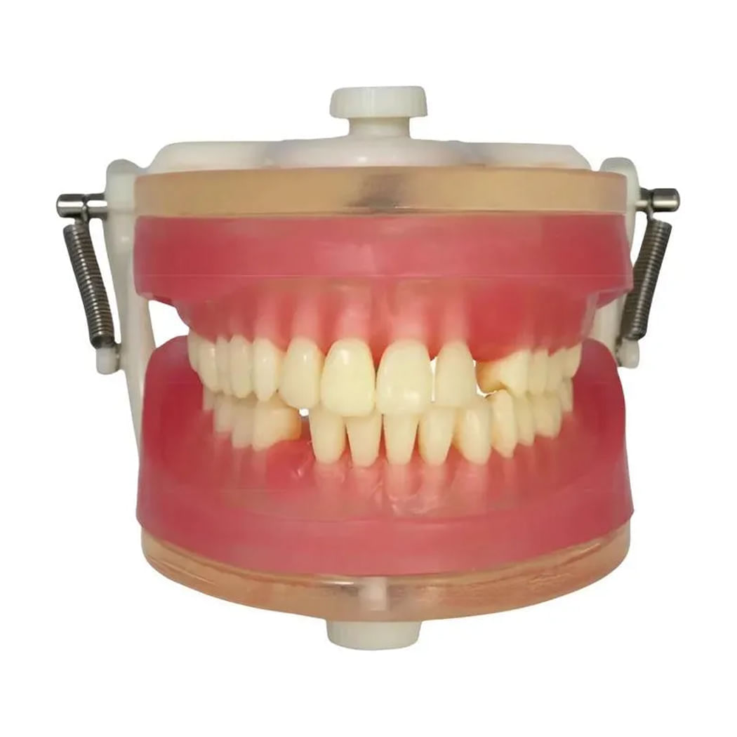 O material simulador de gengiva é altamente resistente e se assemelha ao tecido natural, proporcionando uma sensação realista durante os procedimentos de anestesia e sutura. Além disso, o material simulador de osso é transparente, o que facilita a compreensão da relação entre o número e conformação das raízes e o osso subjacente. Com ele é possível simular dentes inclusos e semi-inclusos, permitindo a realização de cirurgias complexas.