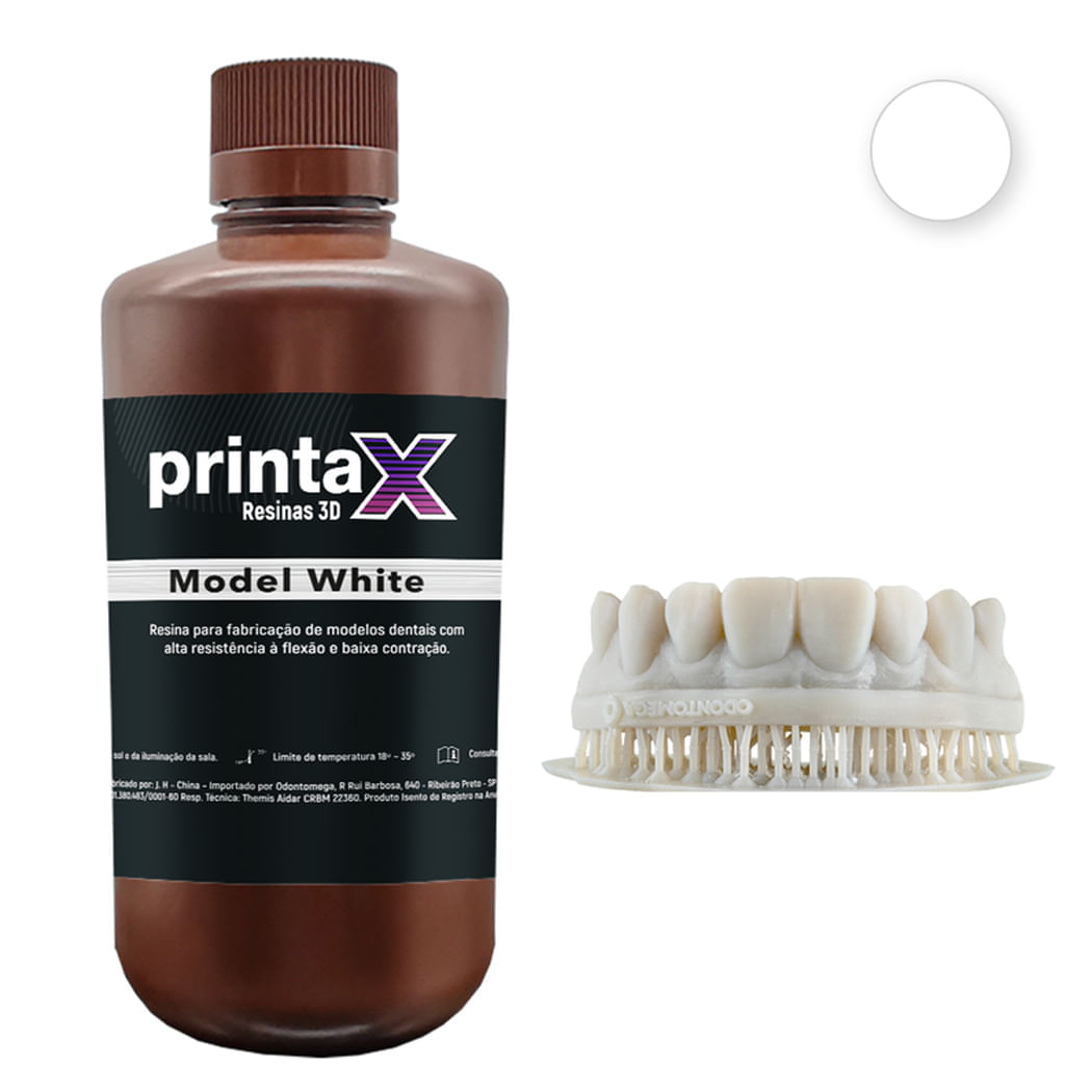 Resina 3D Printax Model White 1kg - Odontomega é ideal para modelagem precisa e detalhamento superior em odontologia. Desenvolvida para impressão 3D, esta resina oferece alta qualidade e durabilidade, garantindo resultados consistentes e confiáveis em cada uso. Sua fórmula avançada proporciona acabamento liso e detalhado, essencial para a criação de modelos dentários com extrema precisão.